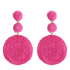 Chicwoolhat Raffia Round Drop Earrings (12 Colors)