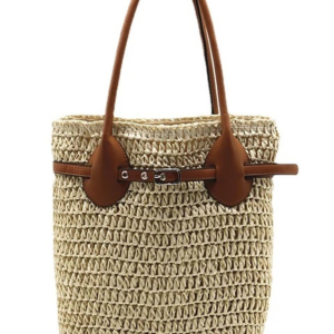 Sapphire’ Woven Straw Bucket Bag
