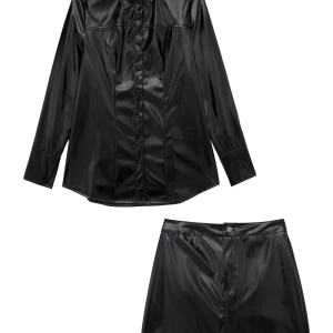 Sapphire’ Faux Leather Shirt & Skirt (Sold Separately)