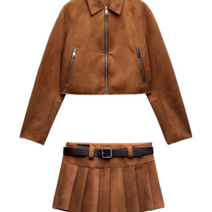 Sapphire’ Faux Suede Short Jacket & Pleated Skirt Set (Sold Separately)