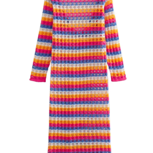 Chicwoolhat Crochet Stripe Long-Sleeved Dress