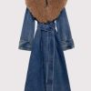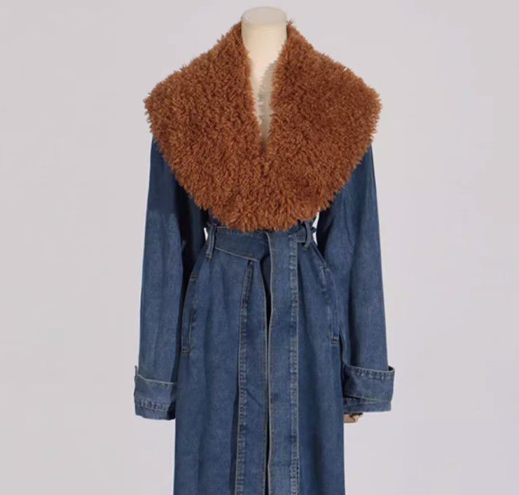 Design: Laper Collar, Faux Fur, Tie Belt, Oversized, Long Sleeves, Denim, Two Pockets, Formal & Casual.