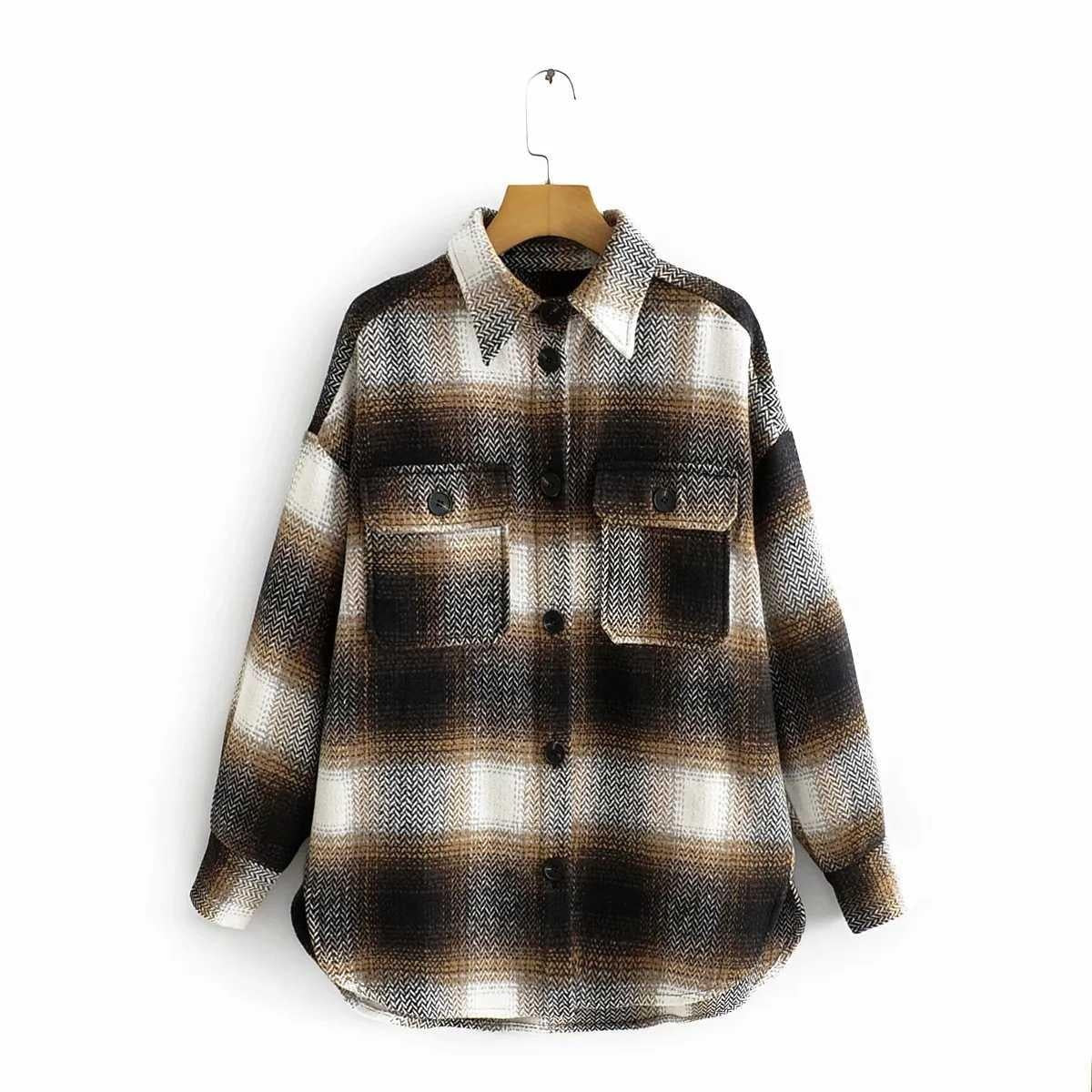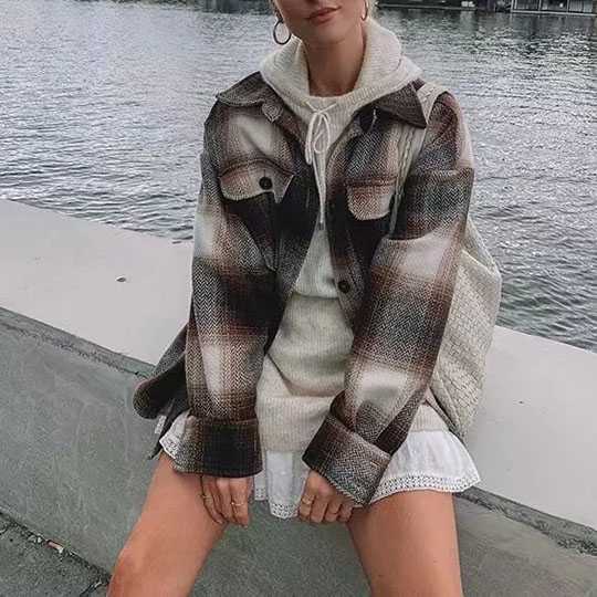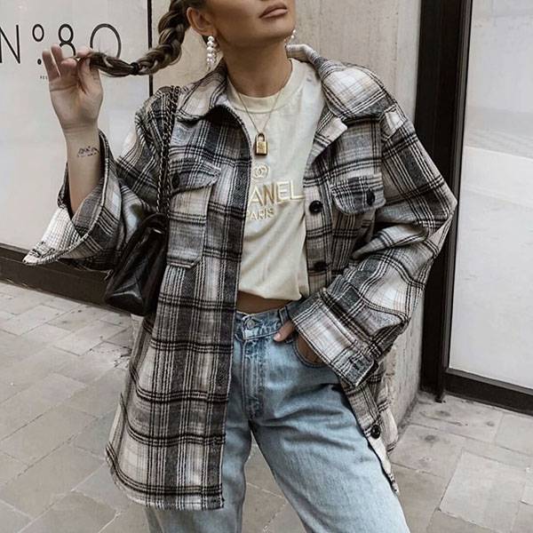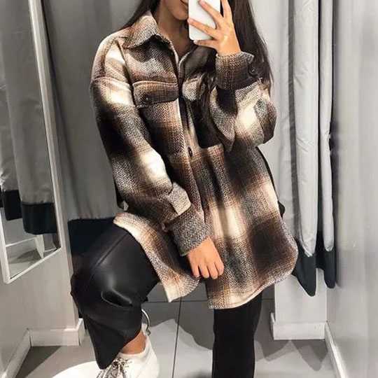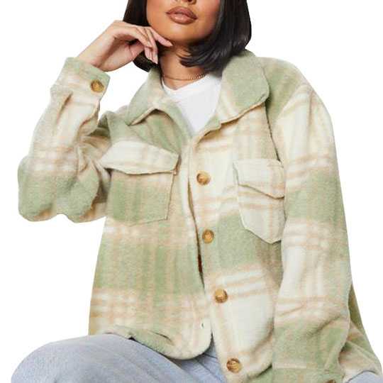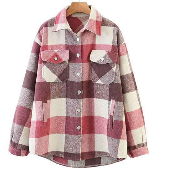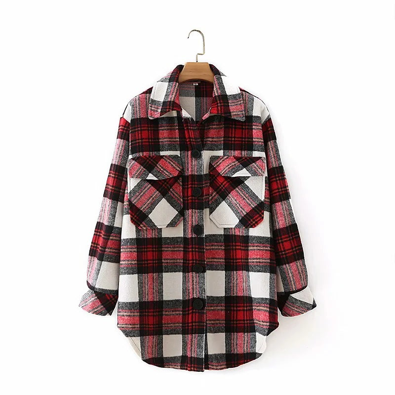Design: Collared, Button Up, Long Sleeves, Lattice, Large Pockets, Casual and Oversized.