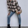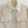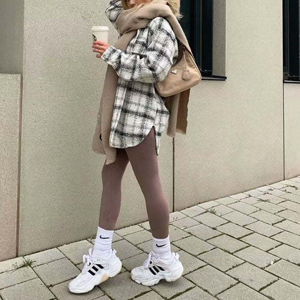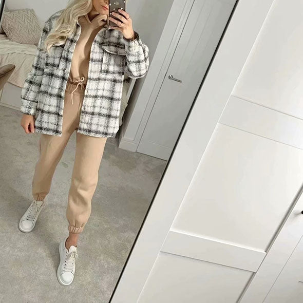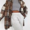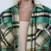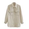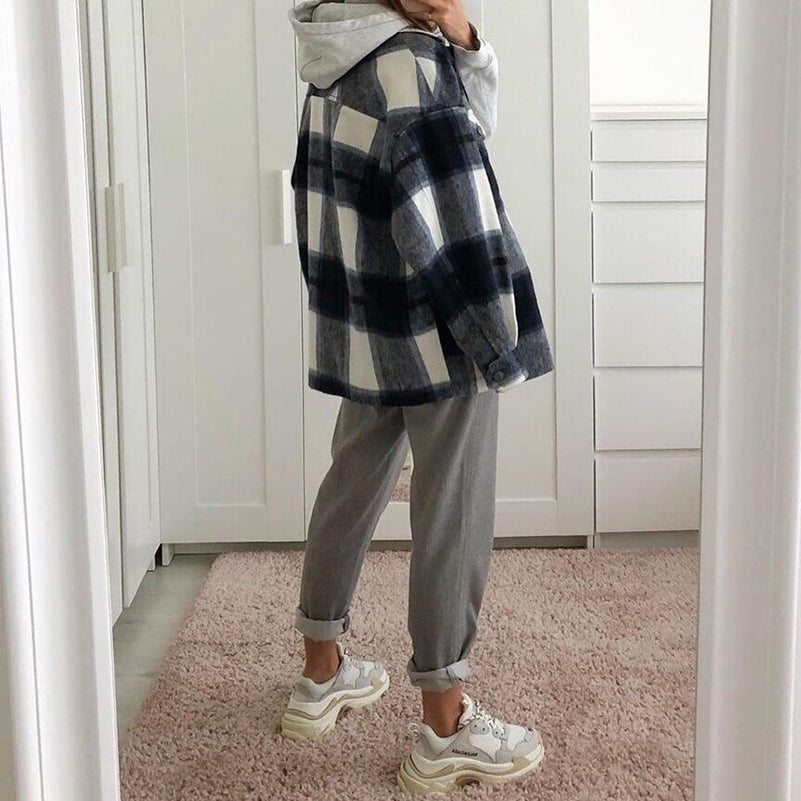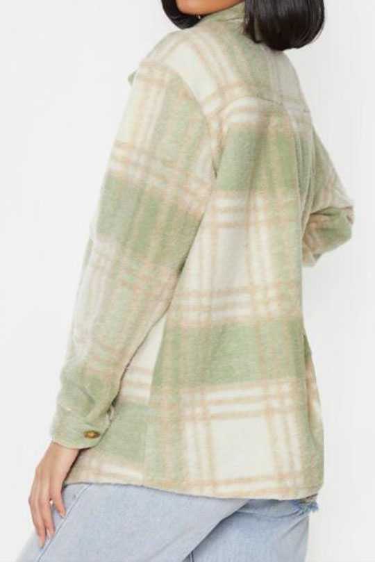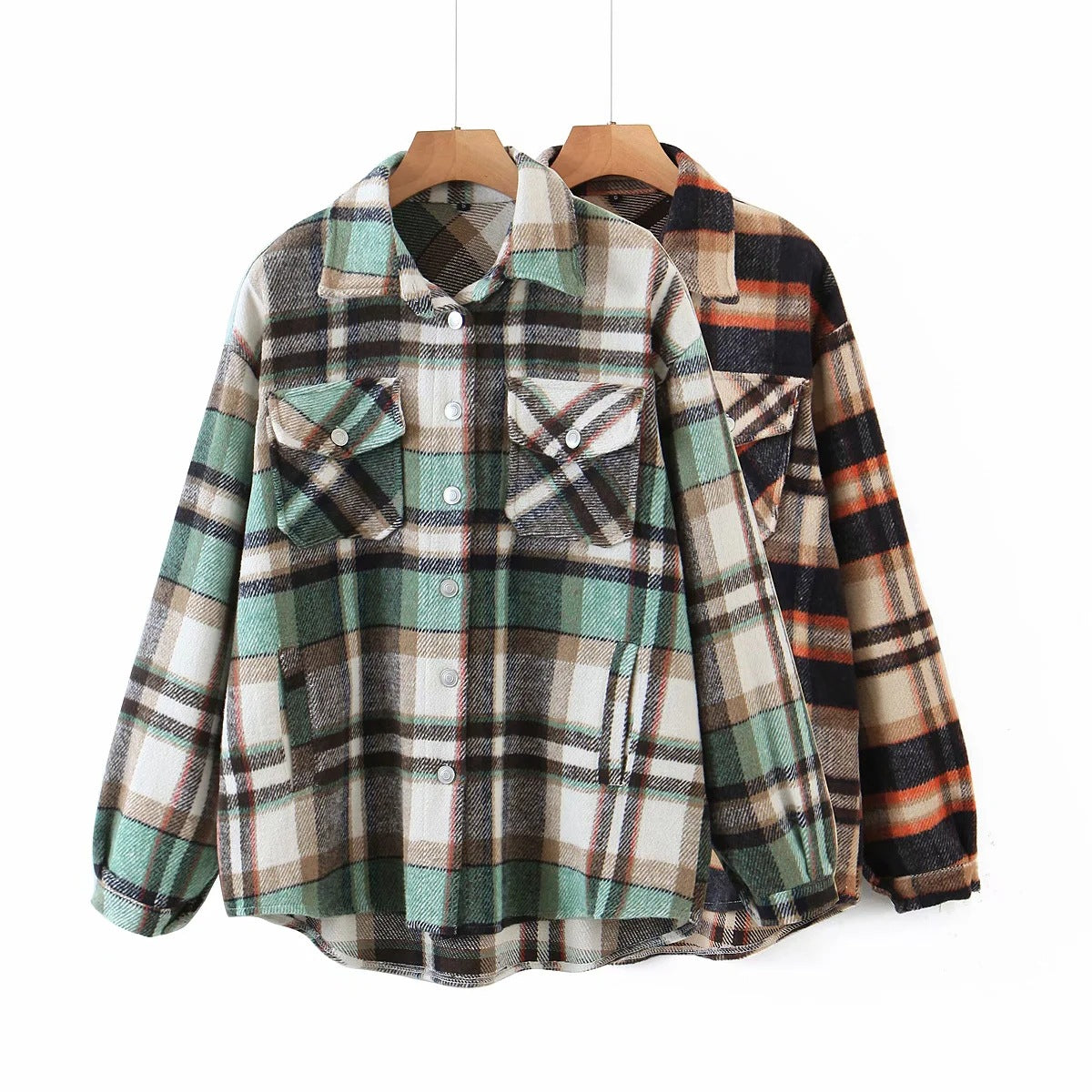 Design: Collared, Button Up, Long Sleeves, Lattice, Large Pockets, Casual and Oversized.