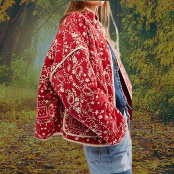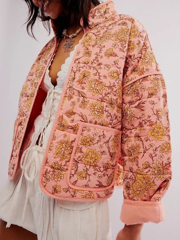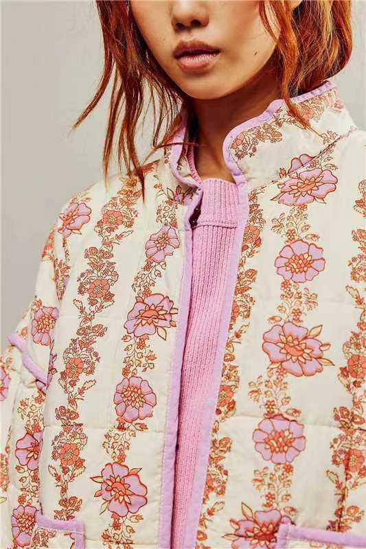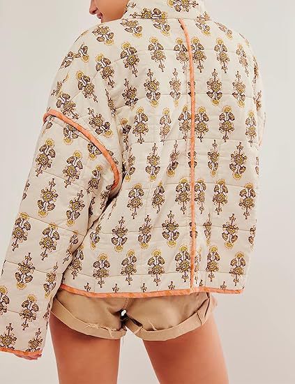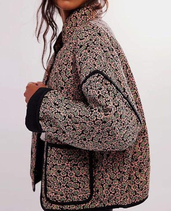 Featuring a unique floral print and dolman-style silhouette, this jacket adds the perfect touch to any look. With dropped shoulders and a high-collar design, it’s both stylish and comfortable. Made with quilt-inspired fabrication, it’s a must-have for any fashion-forward individual. One of the trendy Quilted Jacket With Pretty Floral Print for daily outfits all the year around.