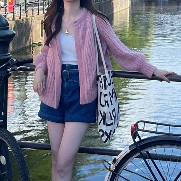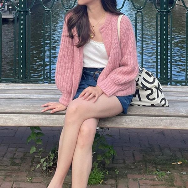 Design: Ballon Sleeve, Open Front, Buttons Loose, Oversized, Long Sleeves, Ribbed Knitting, Baggy Sleeve & Casual.