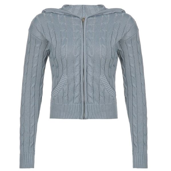 This Over Fit Ribbed Edges Cable Zip Cardigan Hoodies comes in a soft, braids knitting, side pockets, chunky knit with cute hood. The Full Zip Heavyweight Cable Hoodie is popular with wardrobe necessities loves, and get wrapped up & cozy feel with any layers undernead indoor or outdoor.