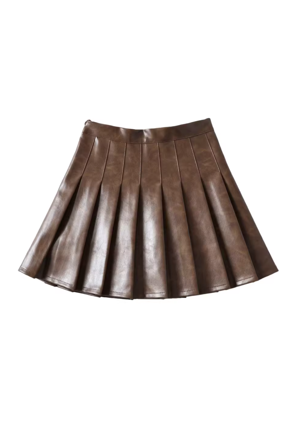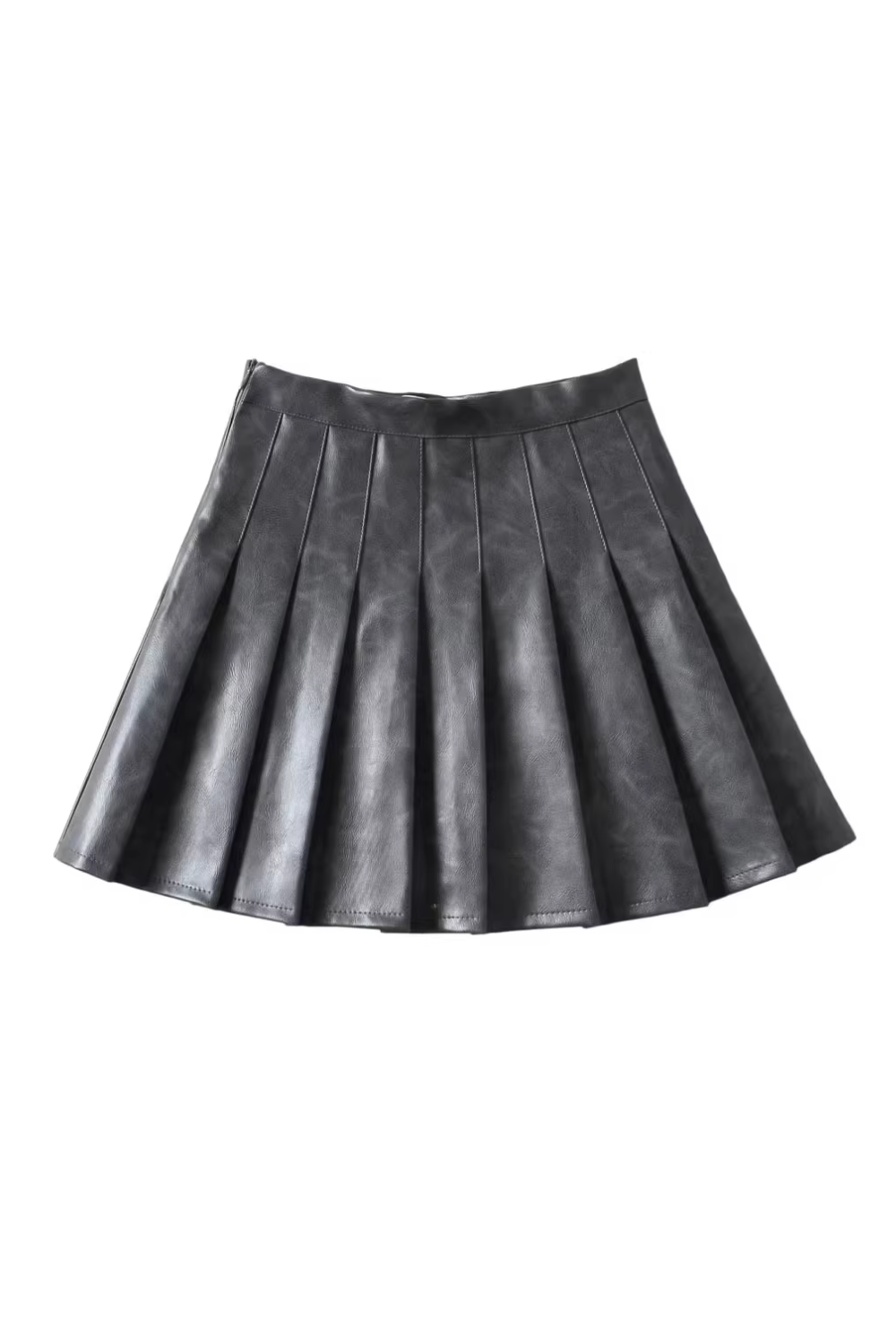 Goodnight Chicwoolhat ‘Sapphire’ High Waist Pleated Leather Skirt (3 Colors)