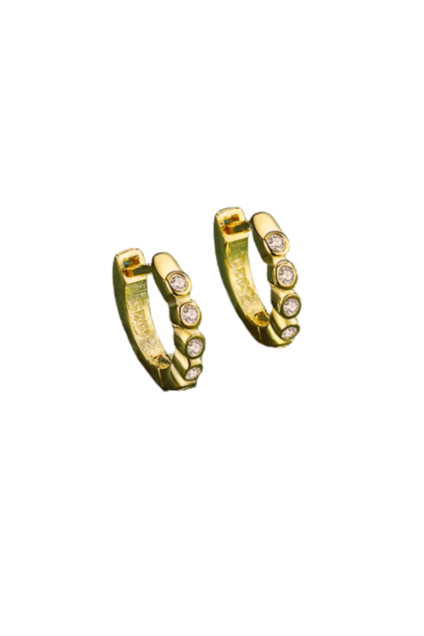 Goodnight Chicwoolhat ‘Sapphire’ Inlaid Gem Stones Sterling Silver Hoop Earrings (3 Colors)