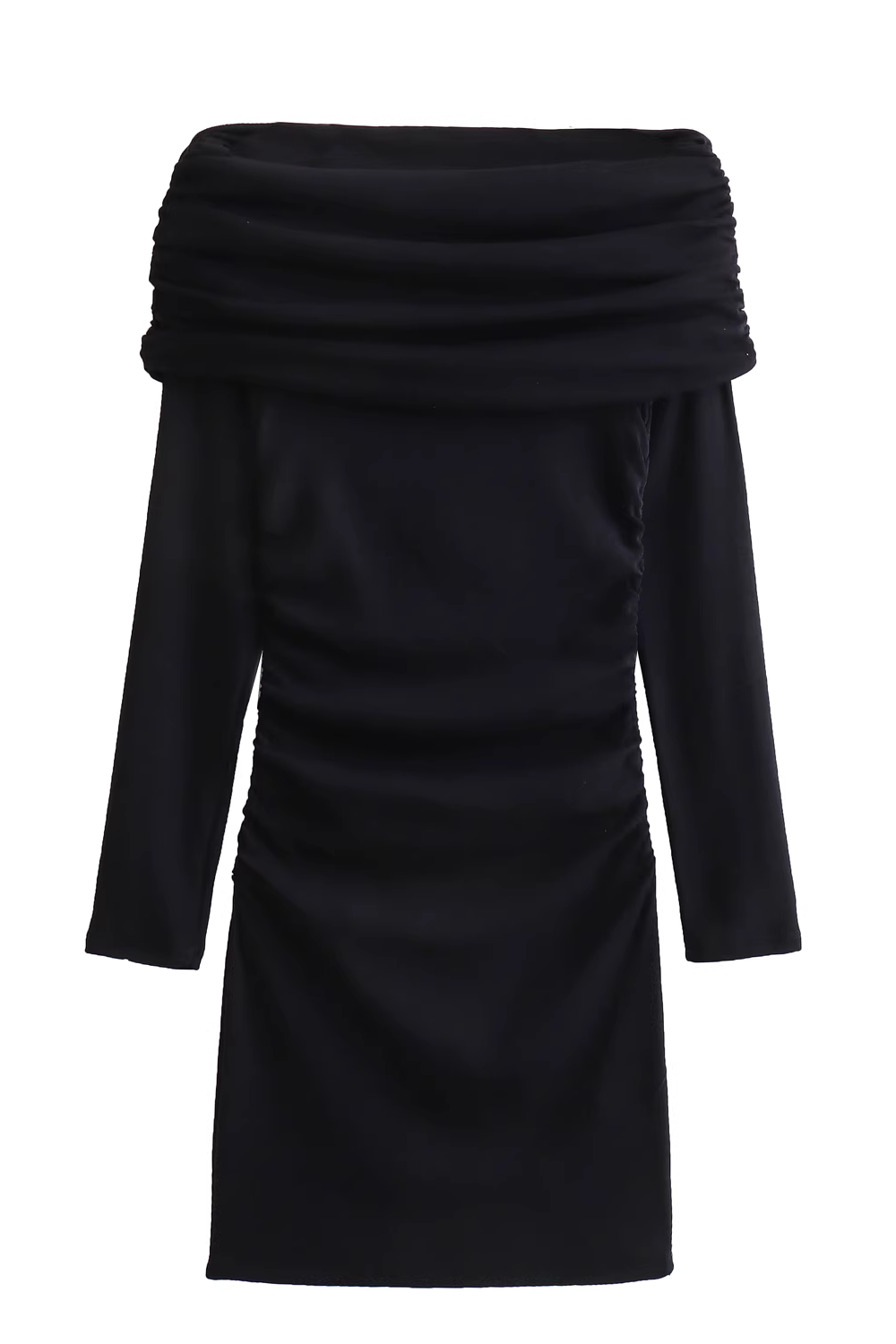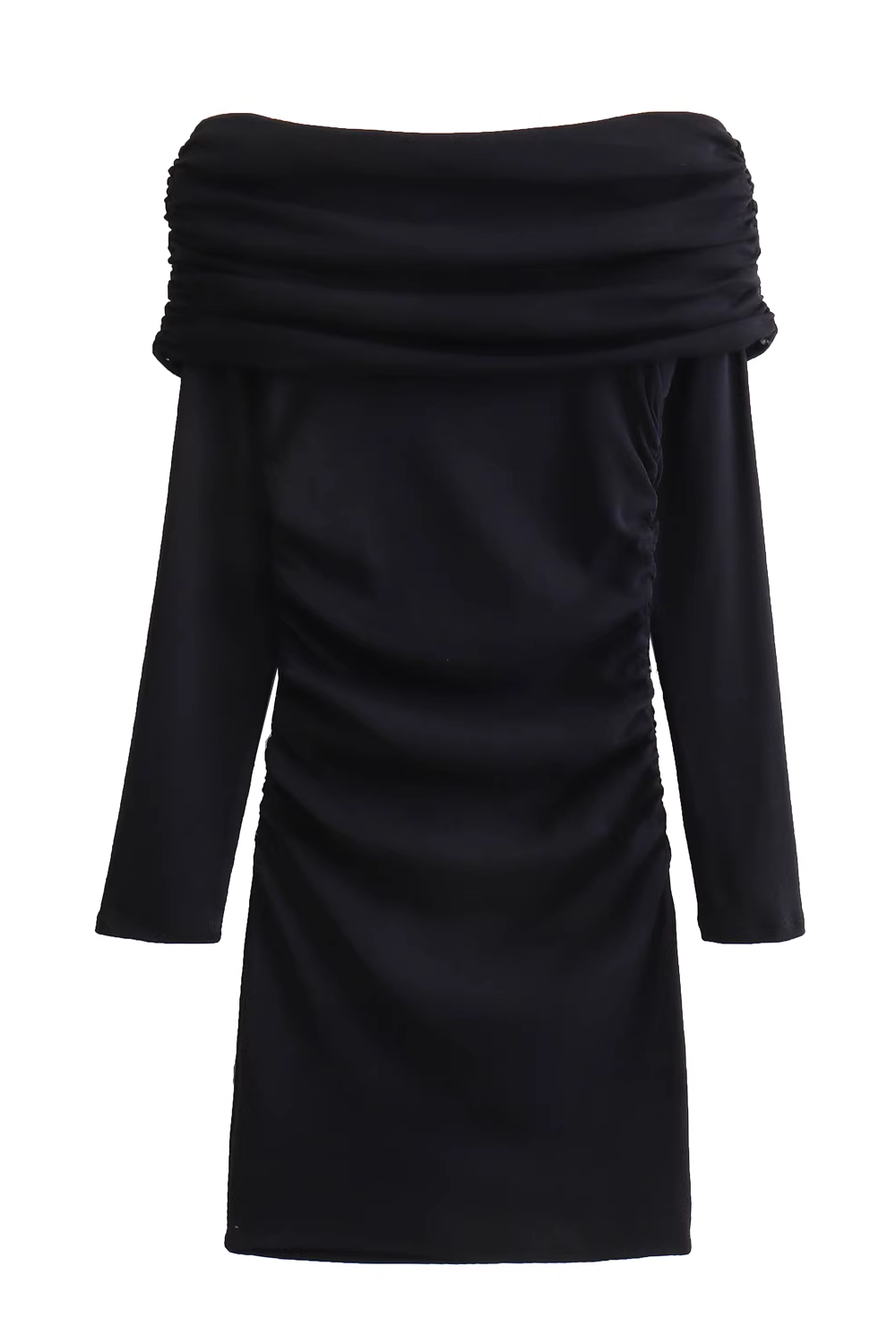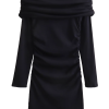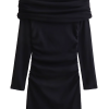 Goodnight Chicwoolhat ‘Sapphire’ Off-Shoulder Long Sleeve Short Dress