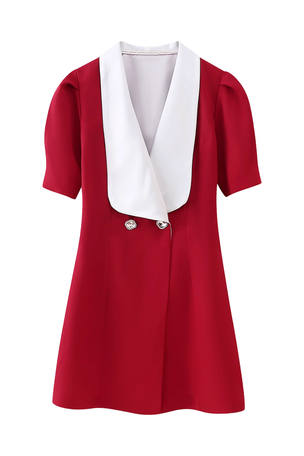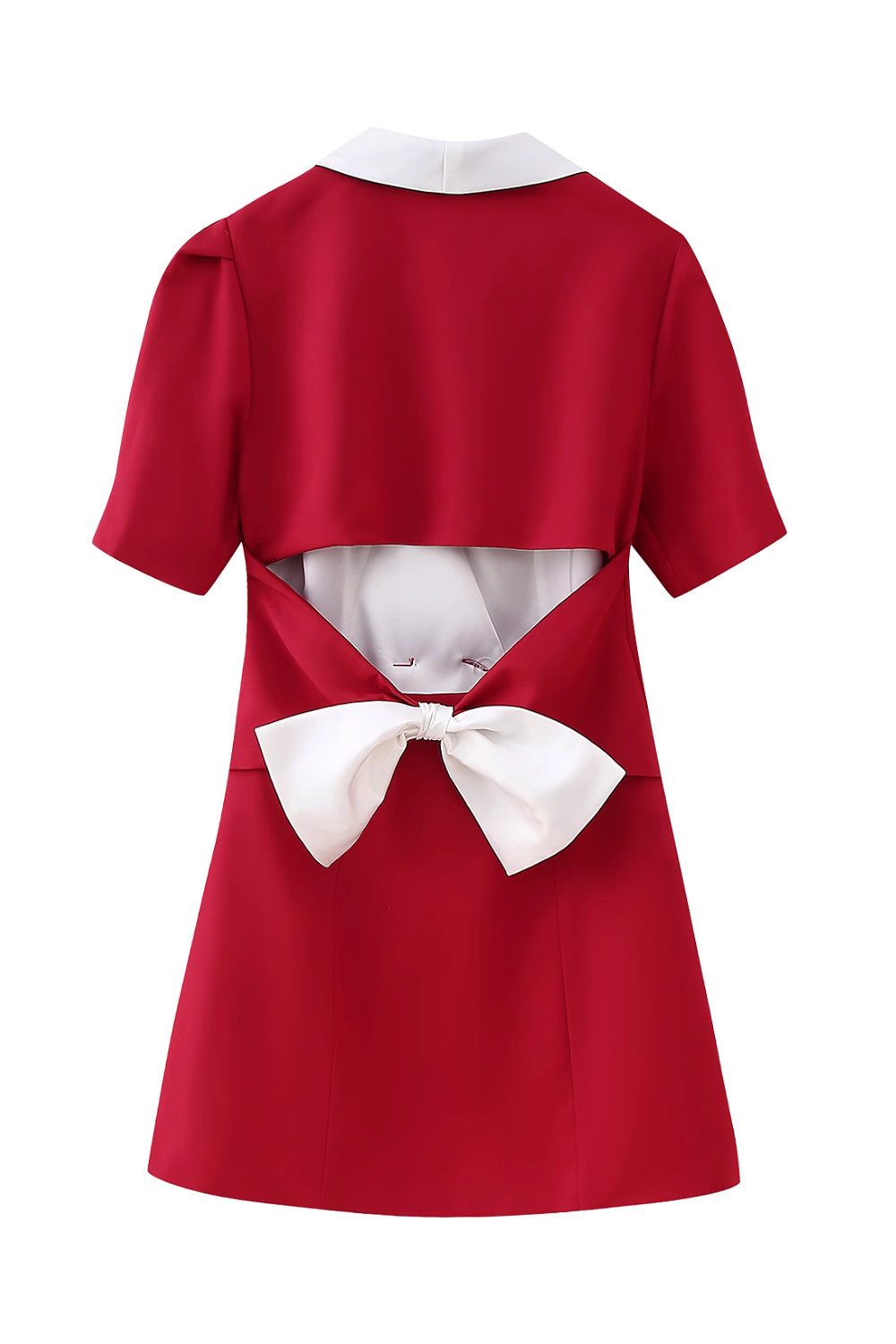 Goodnight Chicwoolhat ‘Sapphire’ Puff Sleeve Bow Decoration Mini Dress