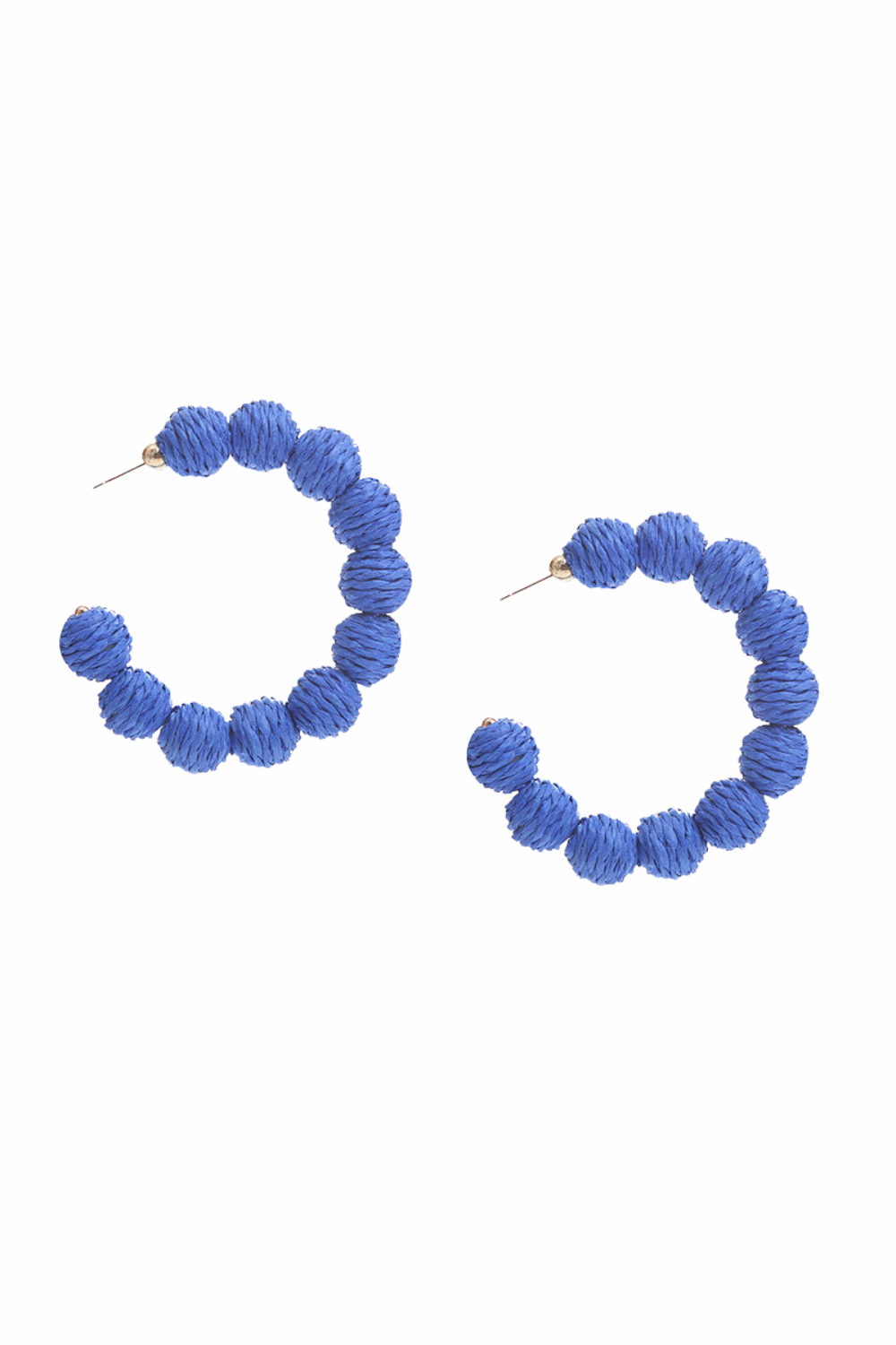 Goodnight Chicwoolhat ‘Sapphire’ Raffia Hand Woven C-Hoop Earrings (11 Colors)