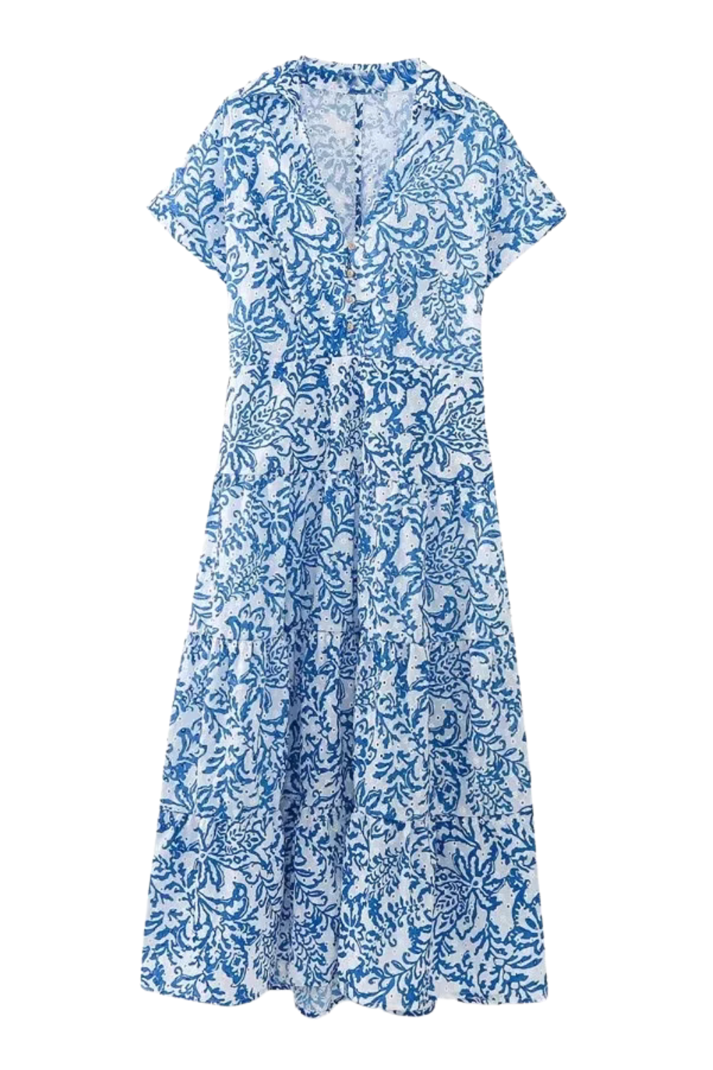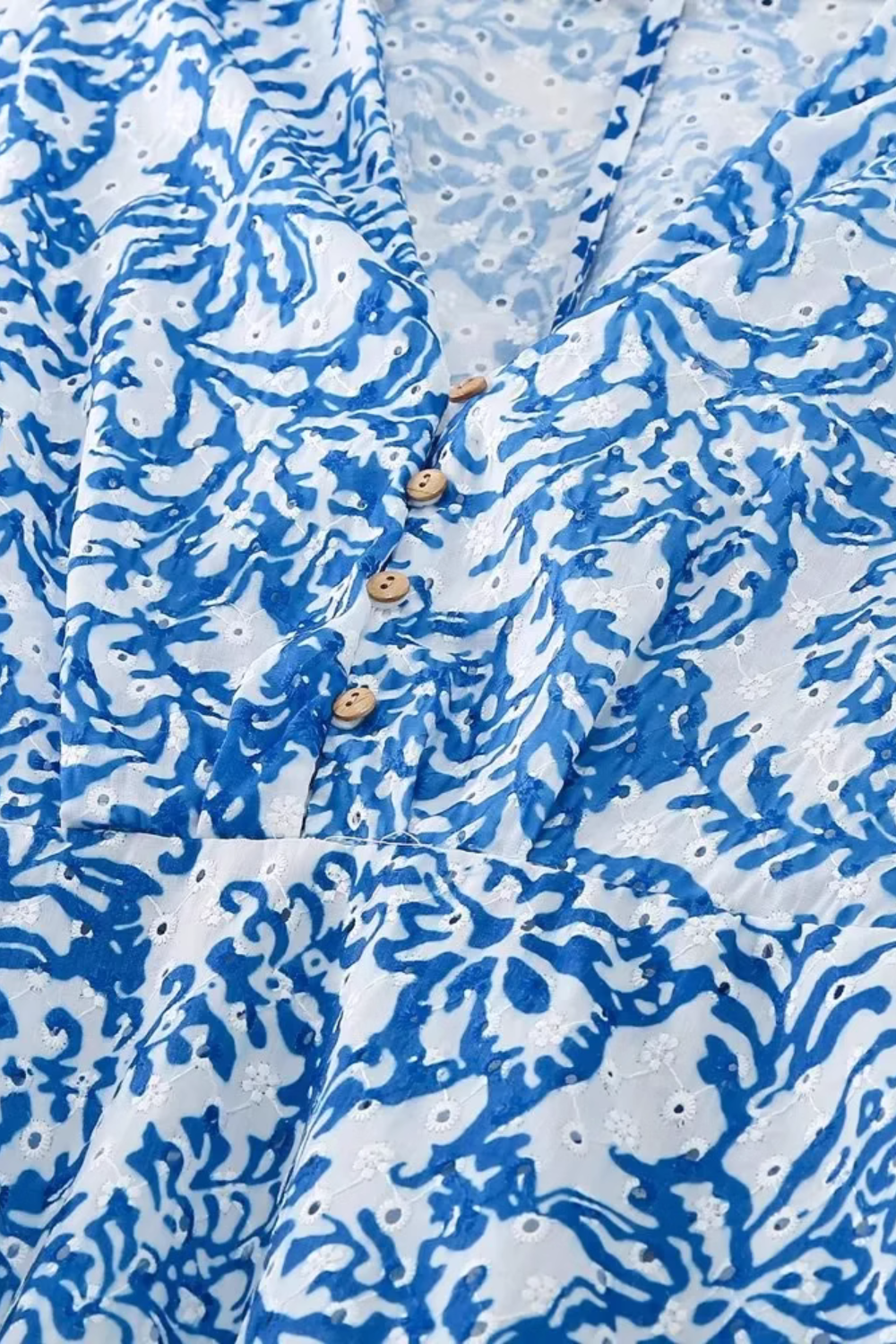 Goodnight Chicwoolhat ‘Sapphire’ V-Neck Cut-out Embroidered Midi Dress