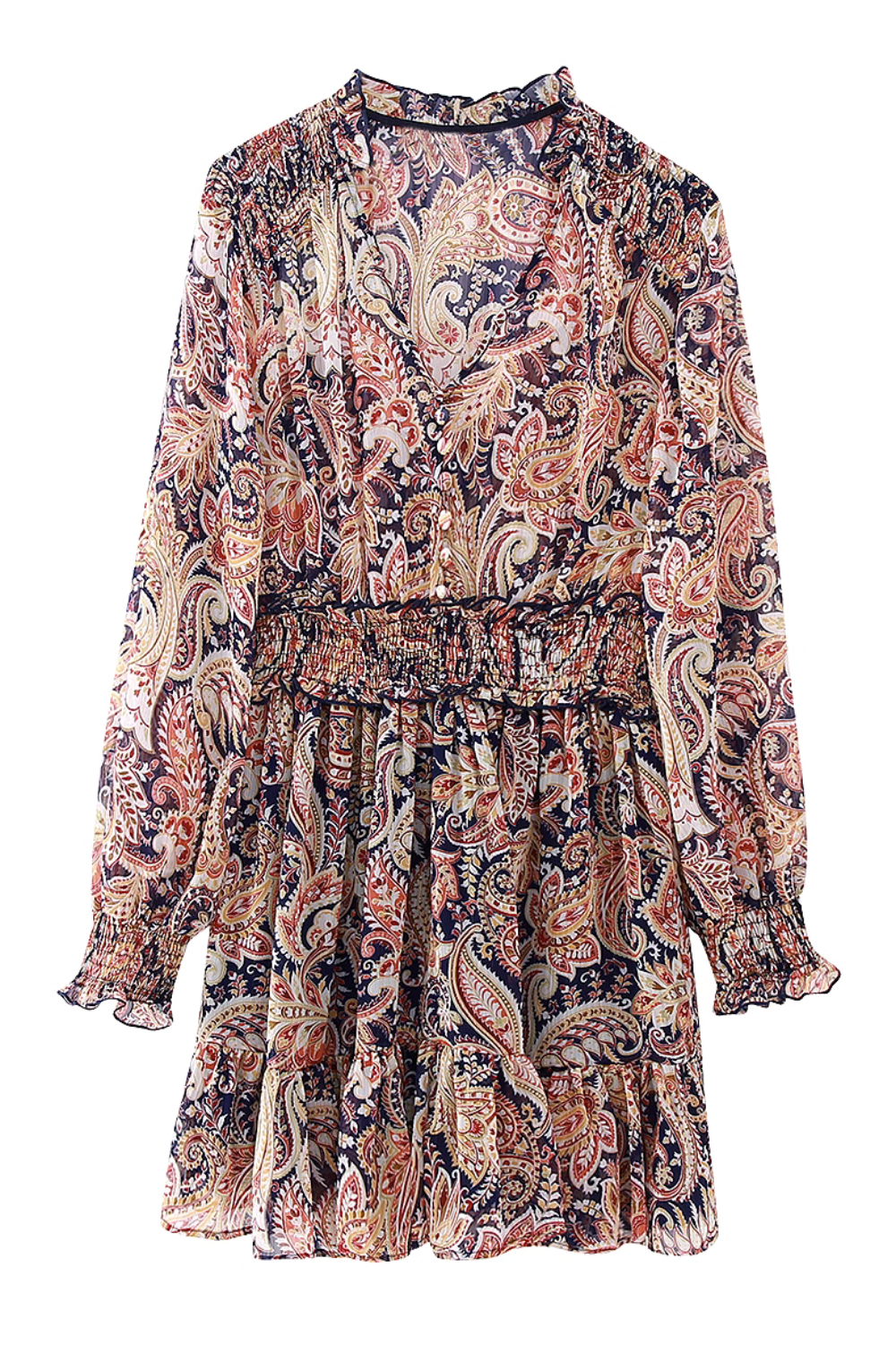 Goodnight Chicwoolhat ‘Sapphire’ V-Neck Paisley Pattern Mini Dress