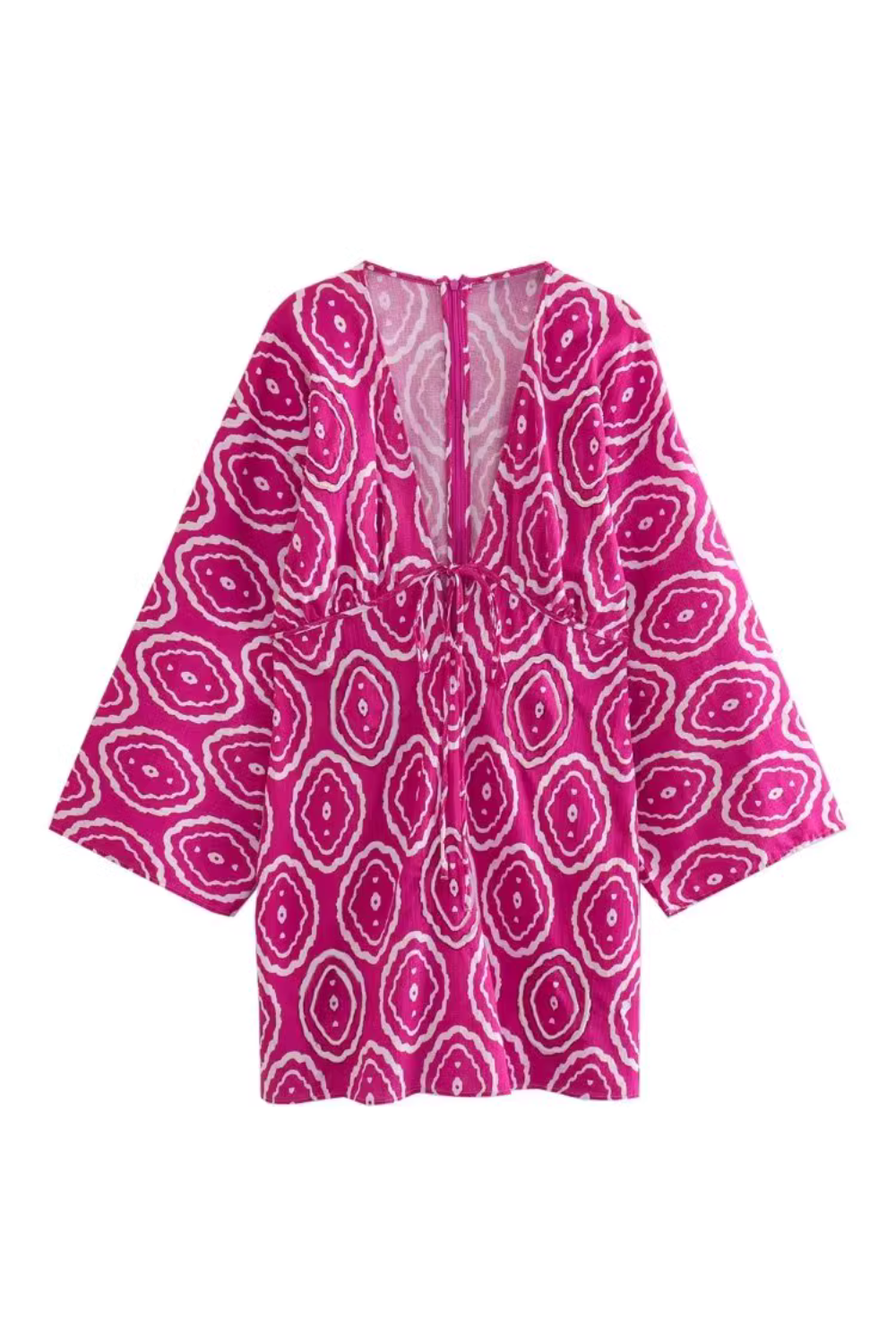 Goodnight Chicwoolhat ‘Sapphire’ V-Neck Printed Short Dress